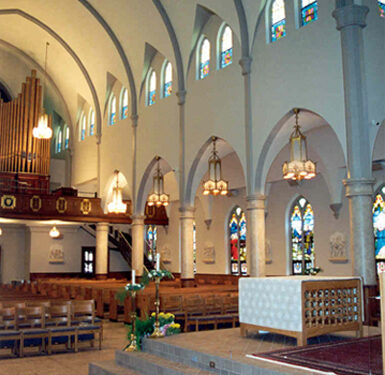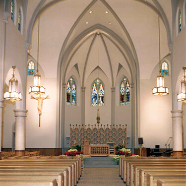 St. Catherine of Siena Church underwent a comprehensive renovation inspired by the liturgical reforms of Vatican II, with a focus on restoring the sanctuary’s original 1904 design while incorporating modern elements. The project included the creation of a central altar dais, reservation chapel and tabernacle, reconciliation chapels, and flexible seating to accommodate contemporary worship needs. In addition, a new egress was added and direct access to the balcony was provided. Many of the changes made in earlier renovations were either removed or thoughtfully reconfigured, such as reopening closed windows, refurbishing the original vigil lamp, and reinstalling key light fixtures, resulting in a harmonious blend of tradition and functionality.