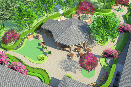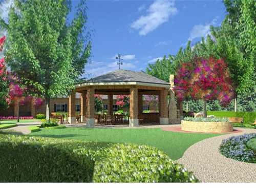KTH Architects was hired by CommCare Corp to design this beautiful garden that pulls in the five senses.